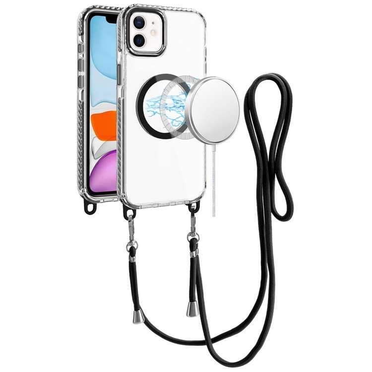 Specification: Apple IPhone 11, Transparent HQ Clear Line Design Edged Hybrid [Magnetic Circle] with Matching Lanyard – Black
