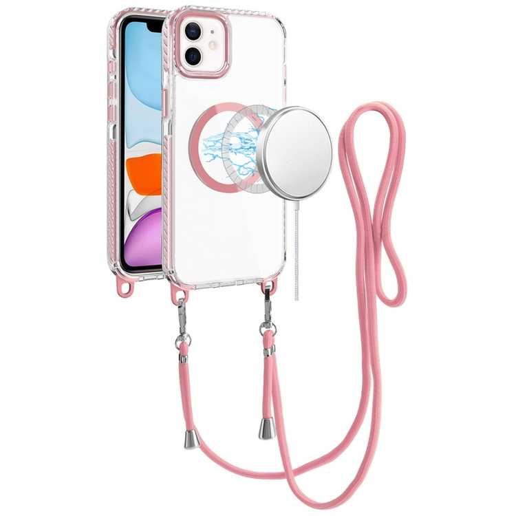Apple IPhone 11, Transparent HQ Clear Line Design Edged Hybrid [Magnetic Circle] with Matching Lanyard – Light Pink