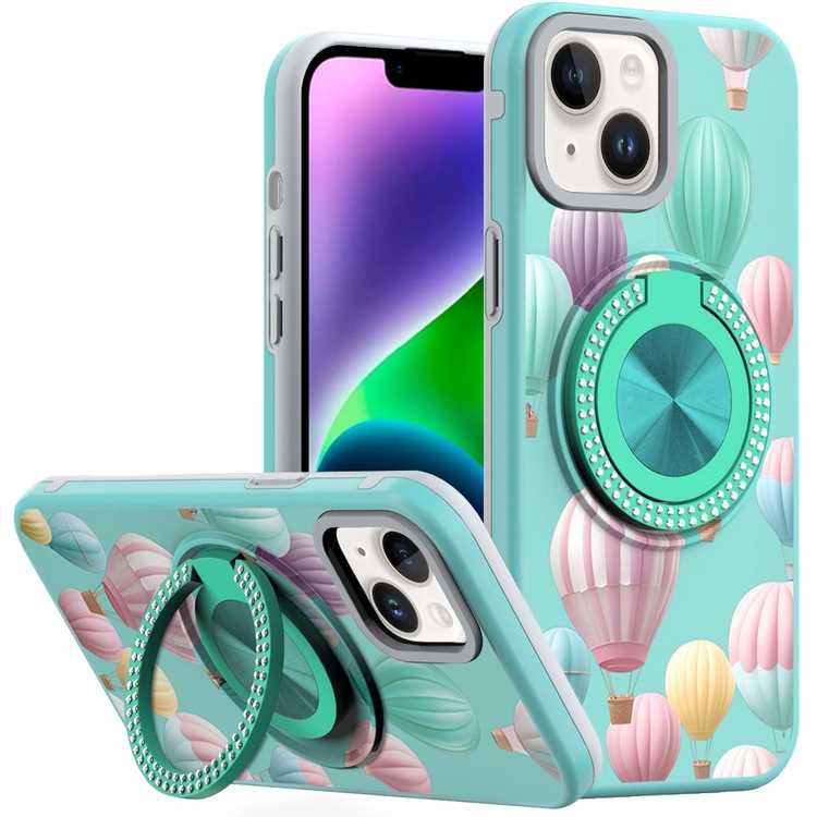 Apple IPhone 14/13,Metal Diamond CD Pattern Design Matte Finished Hybrid with Rotational Ring [Car Mount Friendly] Case – Hot Air Balloon