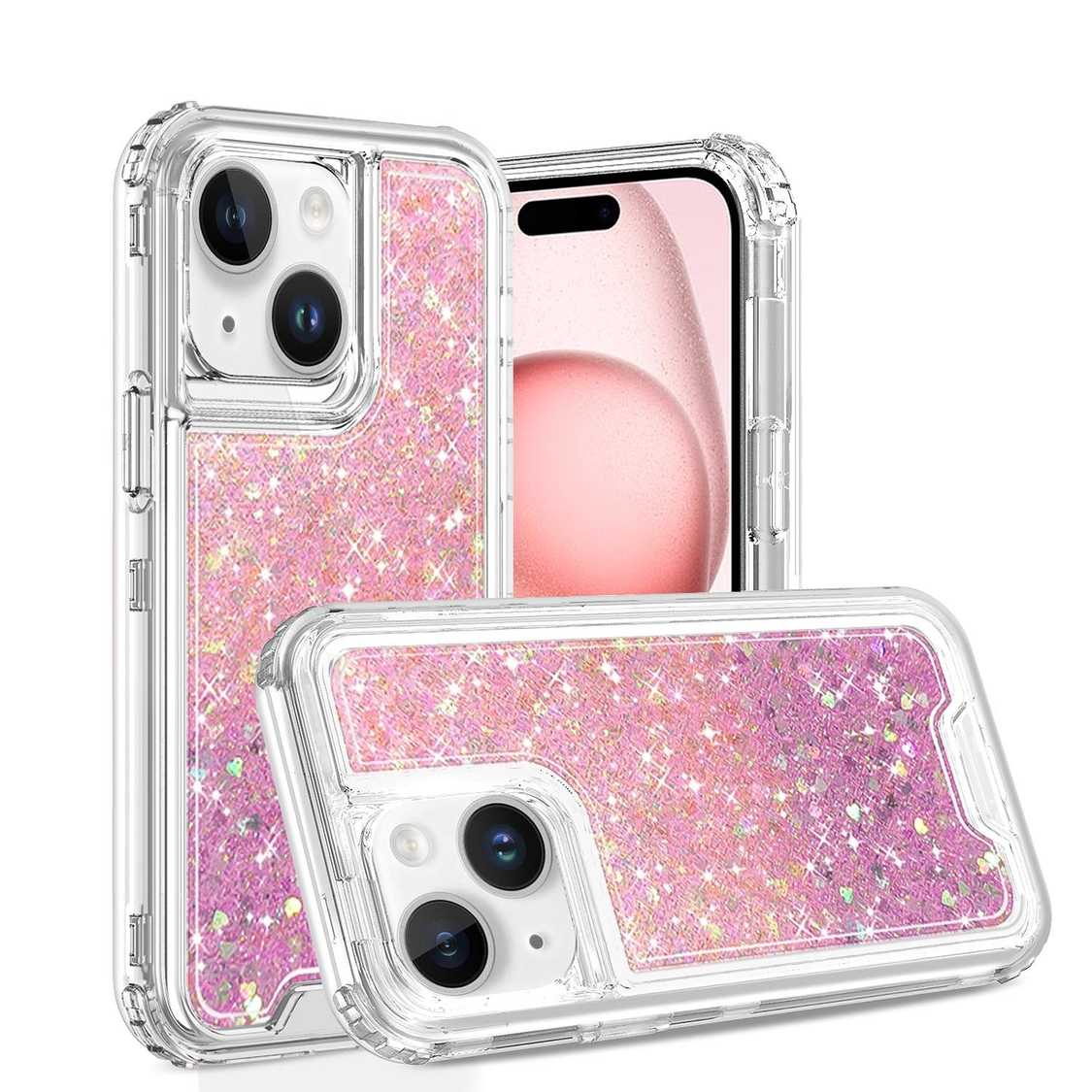 Apple IPhone 14/13,Sticker Glitter 3in1 Shockproof Transparent Hybrid Case – Pink + Light Purple