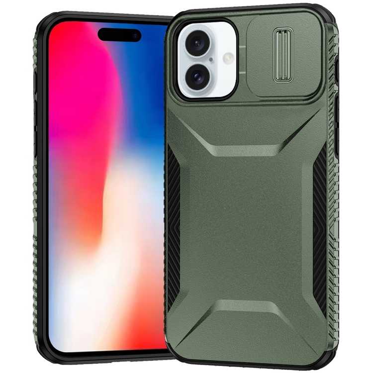 Specification: APPLE IPHONE 16 , HYBRID ARMOR CASE-CAMERA WINDOW COVERING-MIDNIGHT GREEN