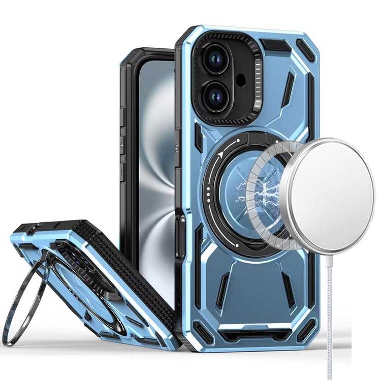 Specification: Apple IPhone 16, Loop Hybrid with [Magnetic Ring Circle] 360 degrees Rotational Kickstand Case Cover – Light Blue