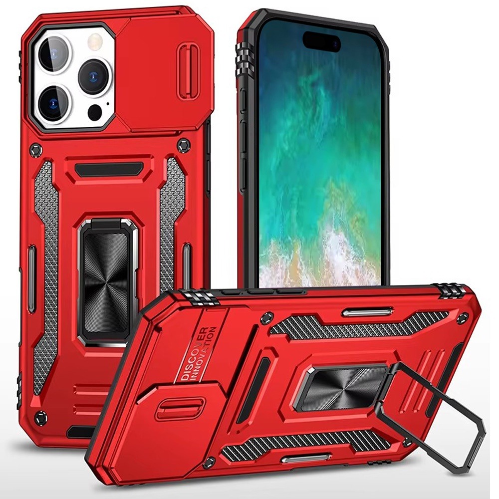 Apple IPhone 16 Pro Max, Utter Tough Metal Ring Movable Camera Window Hybrid Case Cover – Red