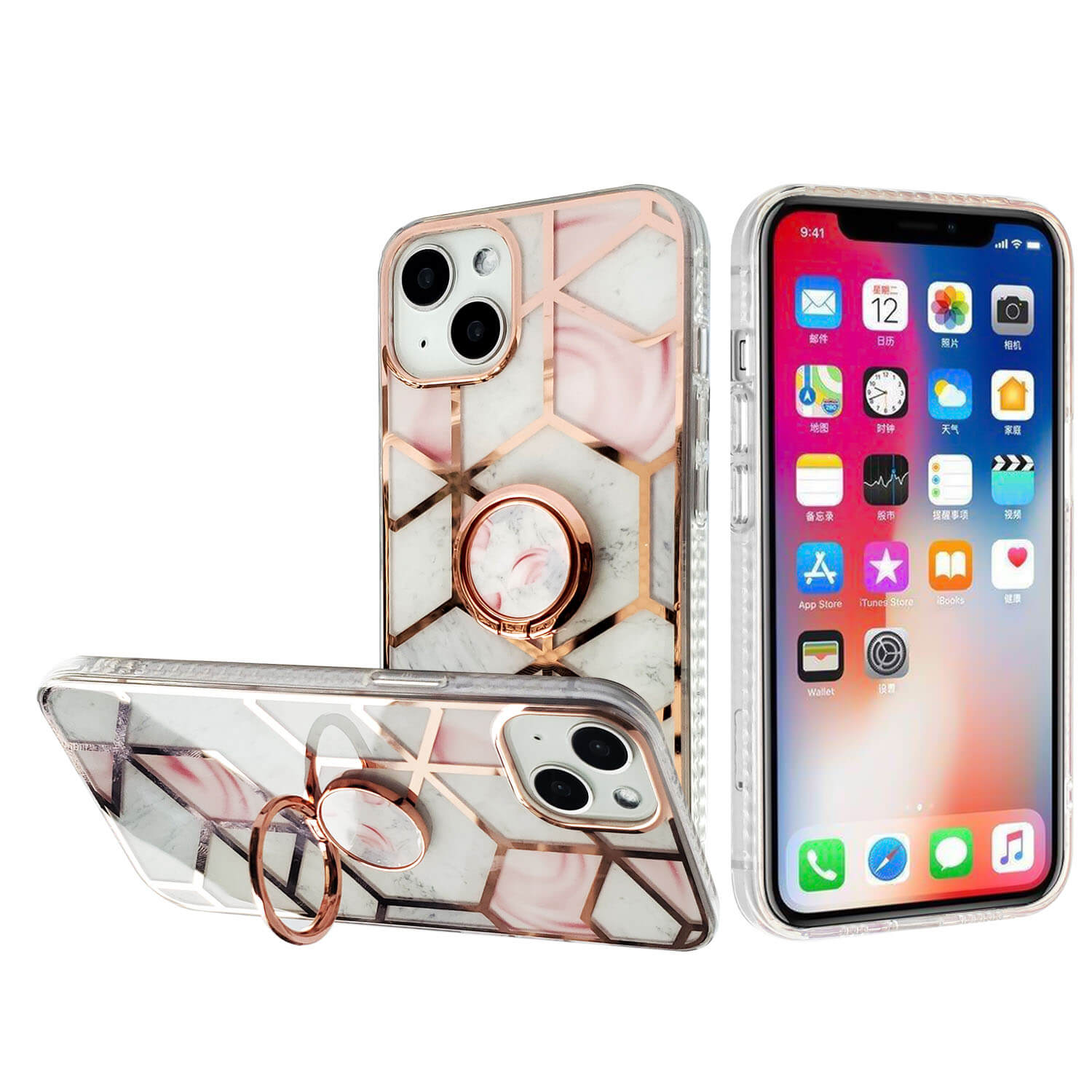 IPhone 13 Pro 6.1″, Hybrid Ring Marble Case – Pink
